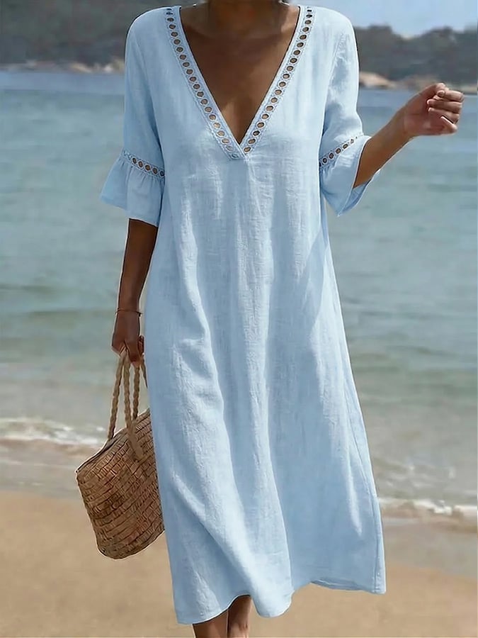 Women's Casual V-Neck Cutout Patchwork Loose-Fit Dress
