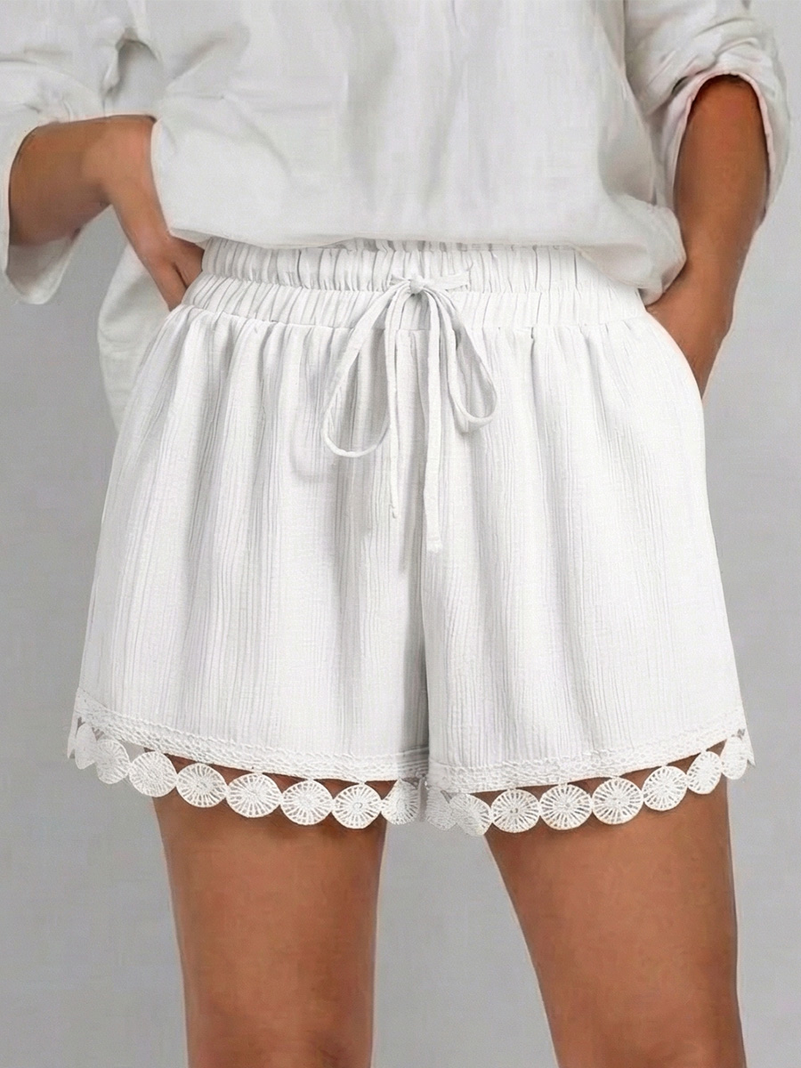 Women's Lace-trimmed Beach Cotton And Linen Shorts